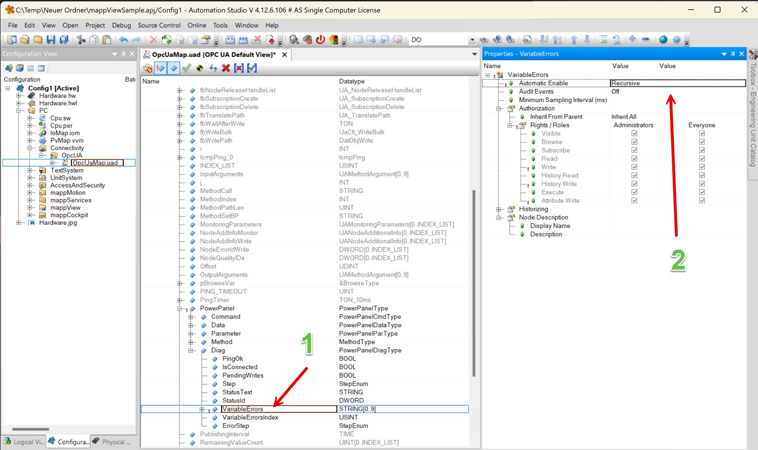 - Select 'Recursive without arrays' for the property 'Automatic Enable'
