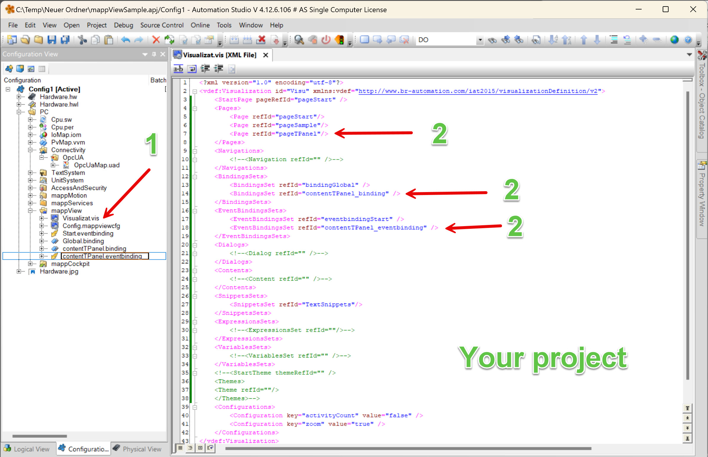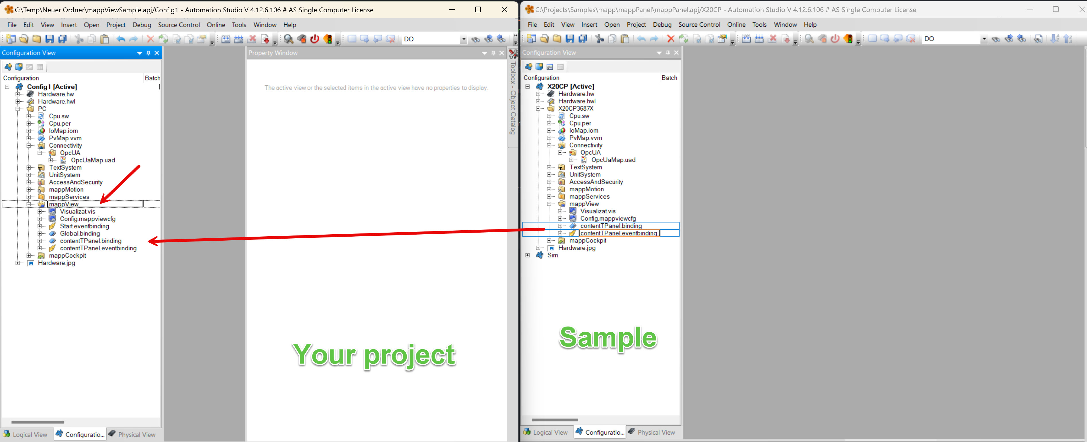Copy and paste the files contentTPanel.binding and contentTPanel.eventbinding into your mappView package under the configuration view.
