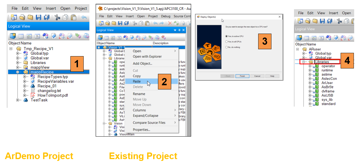 Open the demo project and the exiting project side by side. Go to the logical view in both projects.