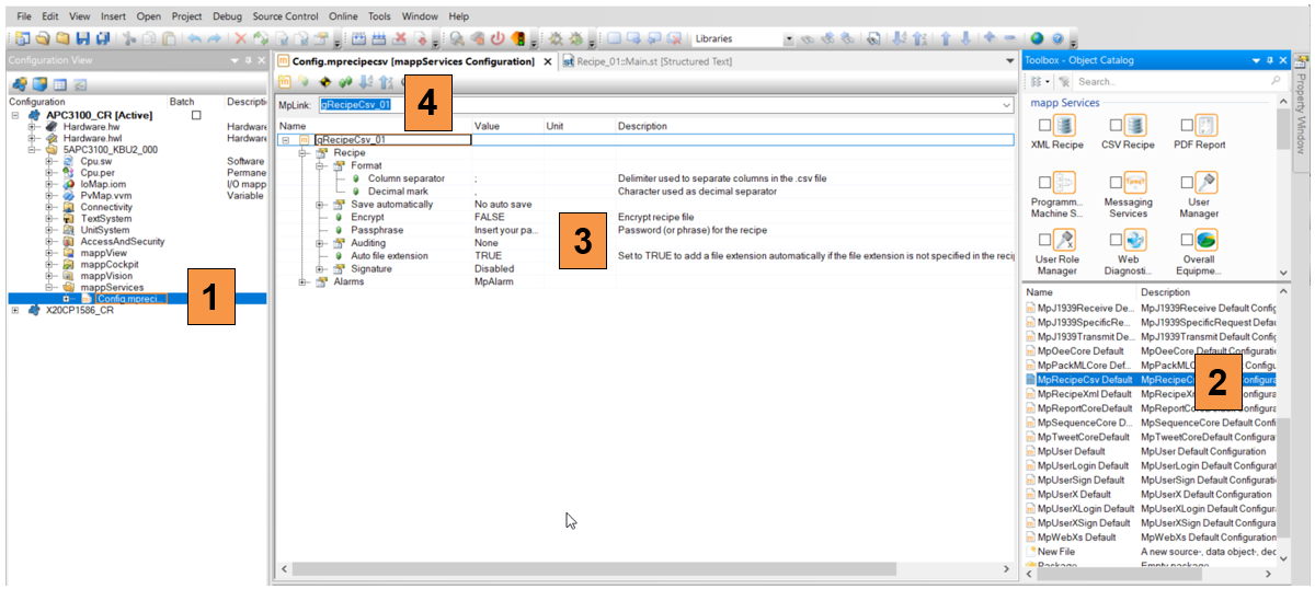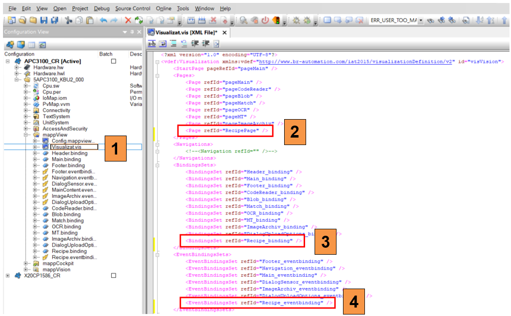 To change the recipe data from the sample values to the “real” data open the RecVariables.var file in the mappRecipe package