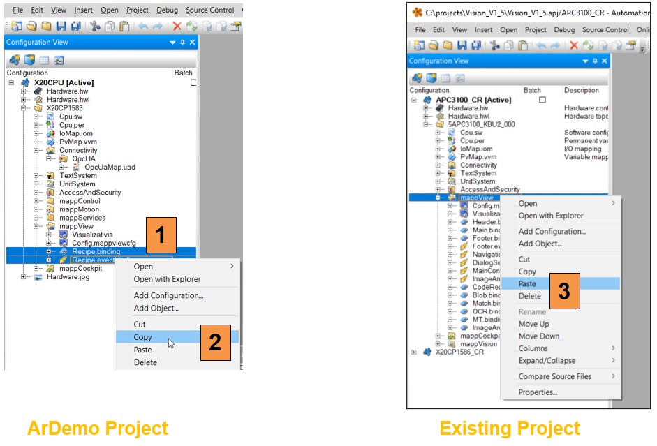 Open the mappView tree in the demo project and navigate to RecipePage, right click and copy it